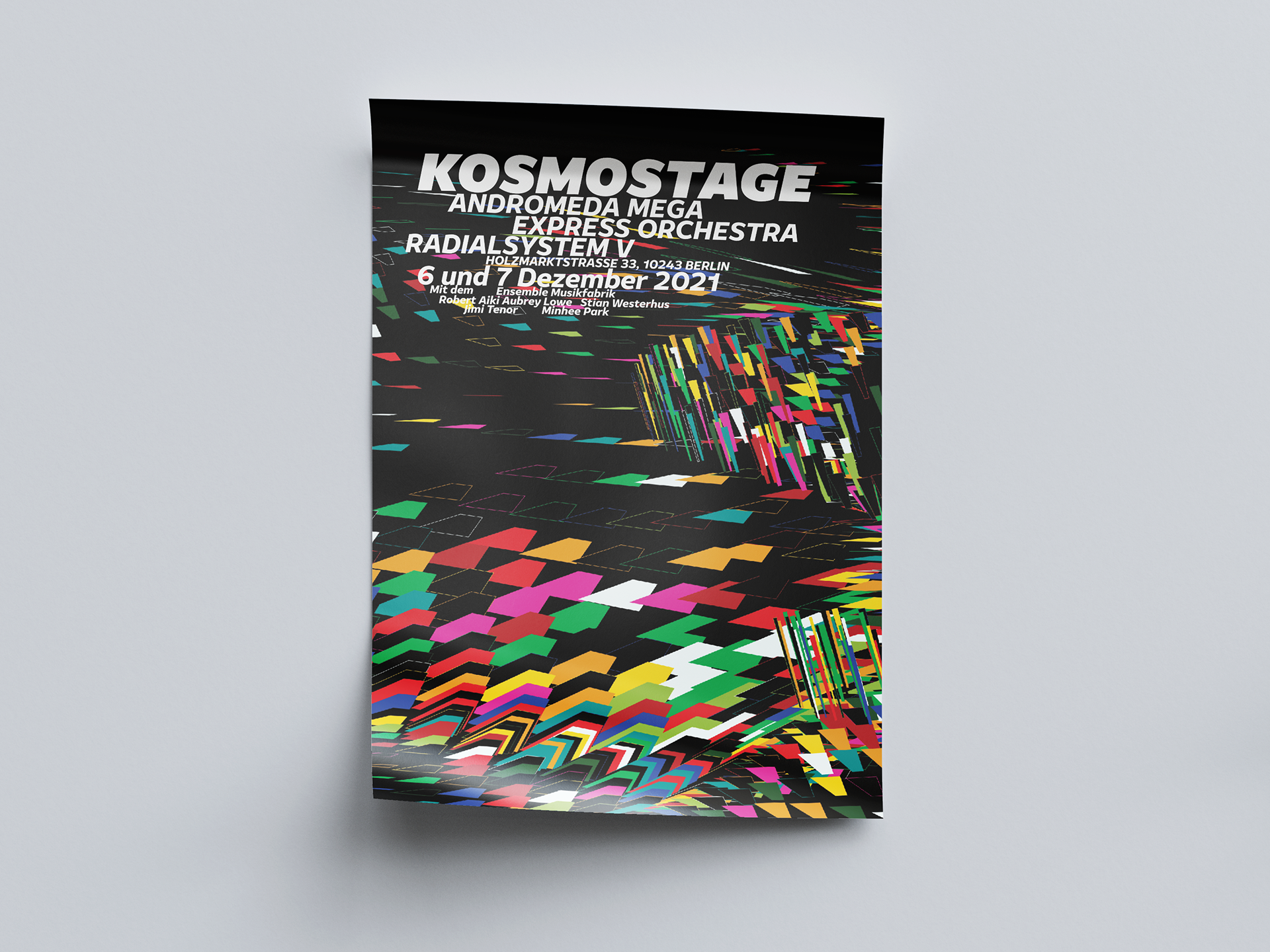 Kosmostage is a Berlin-based music festival organised by the Andromeda Mega Express Orchestra. In 2021, due to the ongoing pandemic, the festival held it's first digital edition. This project suggests an alternative branding for a world in which the festival could be held in a physical space.