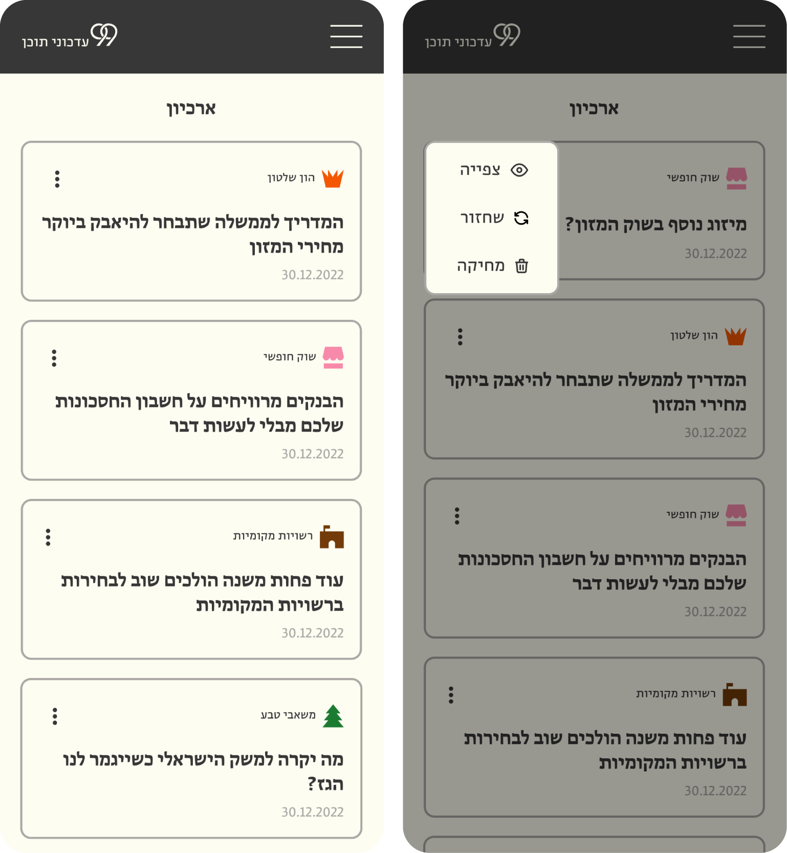 The product is intended to convey reliable, clear, up-to-date and accessible information for the general public about what is happening in the Knesset committees and the activities of Lobby 99.